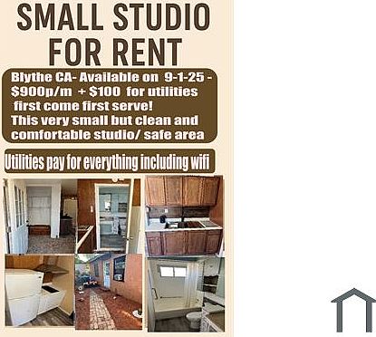 Blythe CA- Studio for Rent Small, comfortable studio in a safe area for rent, $100 in utilities will pay for everything including wifi. Small dogs will be considered. For more properties like this visit Affordable Housing.