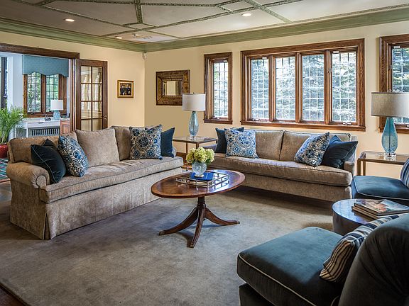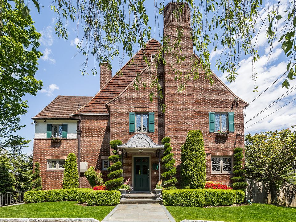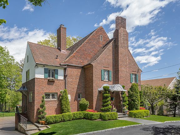 Behind a gated circular drive, on the 18th tee of Siwanoy Golf Course this completely renovated Tudor offers magnificent views, privacy, and ideal space both inside & out. The chef's kitchen was renovated in 2016 with high end appliances and materials. The 1st floor has wonderful flow with oversized rooms, a solarium and patio overlooking the flat yard and golf course. The spacious master suite (20' x 17') has a gas fireplace, ample closets and is connected to office/nursery with views of the golf course. Two additional bedrooms connected by jack & jill and laundry room/kitchenette complete the 2nd floor. The 3rd floor has a large ensuite bedroom and extra room being used for crafts. The 2-story unfinished attic offers plenty of storage. The lower level could be used a mother/daughter suite with legal large ensuite bedroom, family room with kitchenette and additional powder room. This home boasts many amenities, including Sonos, intercom, and camera security systems.