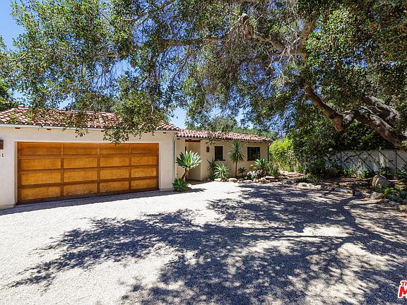 Enter this stunning Spanish Colonial Revival into the open-air courtyard beautifully landscaped with banana plants, aloe vera and agave. The in-ground spa can be enjoyed cool or hot. The house hugs the courtyard with accordion French doors to inspire indoor-outdoor living. The living area boasts wood beamed ceilings and a large fireplace with an open floor plan that includes the kitchen with Carrera marble countertops and custom cabinets. Master bedroom features walk-in closet, French doors to courtyard and Jacuzzi tub in bathroom. Terra cotta tile throughout, authentic 2-piece clay tile roof and minimalist, clean lines give this peaceful oasis a contemporary, cozy feel. The entire property is landscaped with citrus, palm and oak trees, aloe, agave and a vegetable garden. There is room for horses, a pool and RV parking. The main house is 3bed, 2bath, 1726sqft and guest/rental house is 2bed, 2bath, 1022sqft, this is a unique opportunity to make income while living in your oasis!