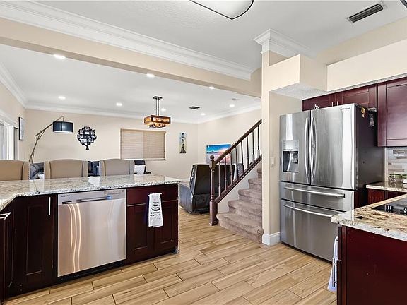 Buyers financing fell thru & its back on the mkt! This stunning 4 bedroom, 3 bath PLUS den home has been TOTALLY RENOVATED & features SMART TECHNOLOGY to adjust your overhead LED lights, thermostat, sprinklers, outdoor security cameras, ring doorbell & alarm system all from your smart phone! Located in the much desired gated community of Bay Arbor where you are mins from everything & features a COMMUNITY POOL, playground & volleyball court. As soon as you walk in you will notice the high ceilings, archways, crown molding, wood look tile flooring & open feel of the home. Formal living/dining room combo & Large family room that is open to the newly updated eat-in kitchen that boasts many designer touches including granite counter tops with waterfall edge on the breakfast bar, designer backsplash, built in double oven, cherry cabinets & smooth cook top & upgraded stainless steel appliances & large pantry. Just off the family room are sliders out to the large patio area to enjoy the fenced in yard. Downstairs you will also find a large laundry room & updated full bath. Upstairs you will find 3 large bedrooms & the large master suite that features 2 large walk in closets, updated bath with dual sinks, garden jetted tub, large walk in shower with multiple shower heads & beautiful designer touches & frameless shower door. The guest bath features a frameless shower door, Vessel sink, designer mirror, lights & designer tile work in the shower. 1 AC replaced in 2018 & newer exterior paint. Located on a corner lot.