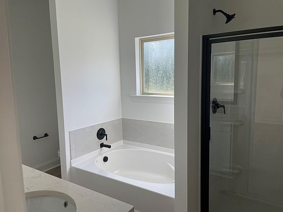 The FALKNER III A in Evangeline Oaks community offers a 4 bedroom, 3 full bathroom, open design. The community is quiet with no through traffic and just minutes away from shopping and other amenities. Upgrades for this home include luxury wood-look ceramic tile flooring, quartz countertops throughout, a gas appliance package, soft close doors and drawers for cabinets, and more! Features: double vanity, garden tub, separate shower, linen closet, and walk-in closet in the primary suite, double vanity in the second bathroom, en suite bathroom in bedroom 4, a kitchen island, spacious walk-in pantry, covered rear porch, recessed canned lighting, undermount sinks, ceiling fans in the living room and primary bedroom are standard, custom framed mirrors in all bathrooms, smart connect wi-fi thermostat, smoke and carbon monoxide detectors, post tension slab, automatic garage door with 2 remotes, landscaping, architectural 30-yearshingles, flood lights, and more! Energy Efficient Features: a tankless gas water heater, a kitchen appliance package, low E tilt-in windows, and more!