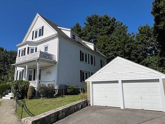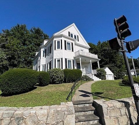 Rarely available "mixed-use" two-family property in Westwood zoned "Local Business B" and available for immediate rehab, use as office/residence and/or investment ... Stately and impressive elevated home on gently sloped nearly-10K sq ft corner lot with detached two-car garage and ample outdoor space ... vinyl sided, replacement windows, newer asphalt-shingle roof, separate gas-fired forced-air heat and central a/c for each unit ... 1st floor office, five generous rooms and one bath ... 2nd/3rd flr resid'l unit combined 8+ rooms, including semi-finished attic space ... A1 location and visibility near Islington shops/restaurants, commuter rail and much more ...