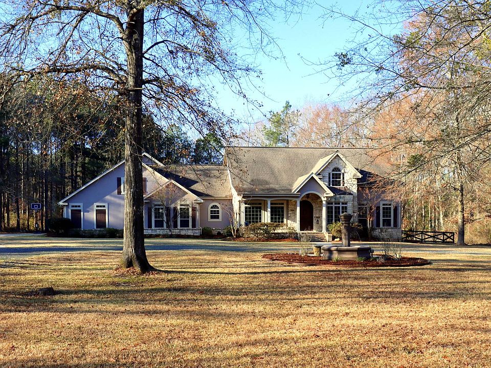 PRE-APPROVAL REQUIRED PRIOR TO VIEWING - CUSTOM ESTATE ON 5.81 ACRES 4 Bedrooms | 4.5 Baths | 3-Car Garage | Pool and more Pull into the circular drive and take in the beautifully landscaped setting with fountain and striking custom wood exterior details that give this home timeless character and curb appeal. This custom-built 4BR / 4.5BA home offers thoughtful design and elevated finishes throughout: • Designer cabinetry with custom wood detail • Granite countertops • Professional-grade stainless appliances • Spacious kitchen island with seating + room for breakfast table • Dining room just off the kitchen • Large family room with tray ceiling opening to the back deck • Gas log fireplace • Expansive windows overlooking the pool and patio • Beautiful office with vaulted ceiling and matching custom cabinetry • 3 bedrooms downstairs with 3.5 baths • Upstairs bedroom with private full bath • All bedrooms feature walk-in closets The primary suite offers views of the pool, jacuzzi, and deck area. Spa-style bath includes: • Jacuzzi tub • Double vanities • Walk-in shower with dual showerheads + bench • Oversized master closet (the size of most bedrooms!) Garage, Shop & Bonus Spaces • 3-car garage • Dedicated shop room • Heated & cooled workout room • Extra washer/dryer hookups Perfect for hobbies, home gym, workshop, or flexible utility space. Heated swimming pool(heat has not been used in 4 years in pool or sauna) • Covered patio • Spacious deck • Outdoor plumbing + gas ready for future outdoor kitchen • Storage building and chicken coop • 5.81 private acres • 3 Central Heat & Air Units serviced in 2024 • 1 - HWH Original & 1 (New Tankless Water Heater Gas) Luxury. Space. Privacy. Functionality. All in one exceptional property just minutes from town.