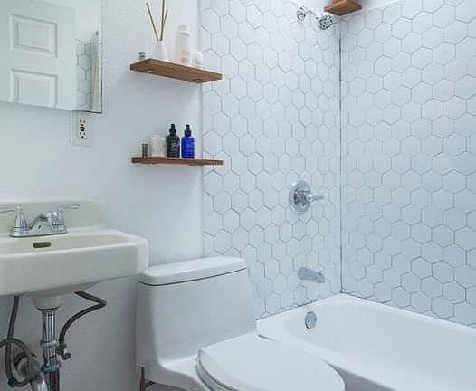 Inside, the recently remodeled kitchen is the heart of the home, featuring a built-in breakfast nook with ample storage. Purposefully placed skylights flood the space with natural light, complementing the honeycomb tiled bathroom, complete with a shining reglazed tub. The primary bedroom is equipped with a modern mini-split AC unit, and the second bedroom has French doors that open directly onto the expansive deck.
