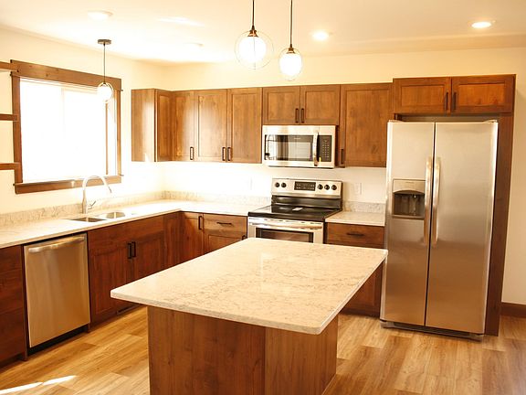 Almost a new house, built less than two years ago! All new kitchen, baths, flooring, fixtures, windows and paint. New sidewalks and parking pad, central air and sprinklers and both lower level bedrooms have egress windows. Main floor laundry and pantry are nice additions. Hurry, this will rent FAST! Tenant pays all utilities, is responsible for lawn mowing and snow shoveling.
