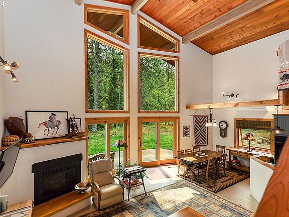If you have always dreamed of owning a Riverfront home in a private peaceful setting just about 10 minutes from Hood River, now is your chance! A rare one owner 2 BD 2 BA home, custom built in 2011 with over 200 ft. of Low Bank Hood River Frontage right out your front door. This idyllic paradise is situated on 3.39 secluded acres, surrounded by tall trees and lush native plants & bushes, creating a close connection with nature tucked away from all the hustle & bustle. Cast your fishing line or launch your Kayak just steps from your front door or just relax and watch the abundant bird activity while listening to the river flow by. Inside you will find high quality Eagle Clad Wood Windows and big sliding doors that open to the Riverside patio & lawn, creating floor to ceiling light & letting in passive solar warmth in the winter months. Beautiful local knotty pine covers the high ceiling in the living/dining room and a cozy gas fireplace creates just the right ambiance. The kitchen features a propane gas cooktop, double ovens, and a built-in microwave. Hosting guests could not be easier with a Bedroom and Full Bath on the main level. You will find a skylight perfect for stargazing in the high vaulted ceiling of the upstairs Primary Bedroom loft and a deluxe 6ft soaking tub in the Ensuite Bath. Experience the close convenience of all the activities that the Hood River Valley has to offer and when the snow flies you are just 45 minutes from the ski slopes of Mt Hood. Complete with irrigation rights and a well-insulated detached two car garage that has a separate 220 V electrical panel. PRIVATE DEAD END ROAD ABSOLUTELY NO DRIVEBYS PLEASE