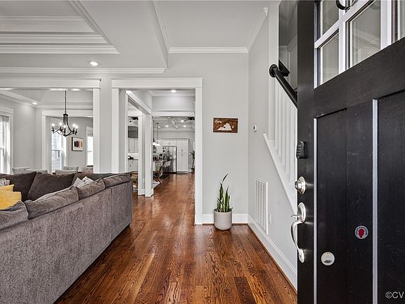 Experience luxury living with soaring 10-foot ceilings and custom finishes throughout this stunning 4-bedroom, 2.5-bath home. The expansive first floor features a massive open living area with coffered ceilings, two gas fireplaces, bold picture frame molding, and elegant crown molding.The gourmet kitchen is a chef’s dream—featuring granite countertops with ceramic tile backsplash, an oversized island, custom soft-close cabinetry, stainless appliances, a dedicated coffee/bar station with wine rack, recessed lighting, and more.