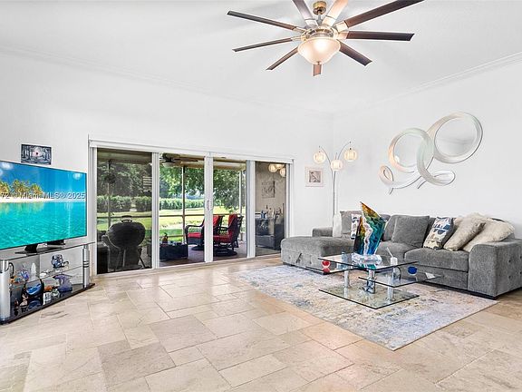 Fully Updated 2bd/2,5 bath townhouse in the heart of Davie at the Isla Merita community. This move-in-ready unit features travertine marble floors that flow throughout the first level, creating a timeless and luxurious look. Upstairs, the Brazilian cherry wood on the staircase and in both bedrooms elevate the home's character with rich warmth and style upstairs. Modern kitchen with stainless steel appliances, open living/dining layout, the primary suite includes an en-suite bathroom generous closet space, and the same breathtaking golf Course view, the second bedroom is equally spacious, private screened-in-patio with stunning views of Golf Course Grand Oaks, offering peaceful mornings. Minutes to Nova Southeastern University easy access to I -595, Turnpike, and I-75