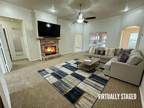 Welcome to this stunning 3 bedroom, 2 bathroom home in Killeen, TX. Step inside and be greeted by a sunroom that floods the space with natural light, creating a warm and inviting atmosphere. The modern design style is showcased throughout, with sleek stainless steel appliances and dark brown cabinets in the kitchen. Cozy up next to the brick fireplace on chilly evenings, creating the perfect ambiance for relaxation.
