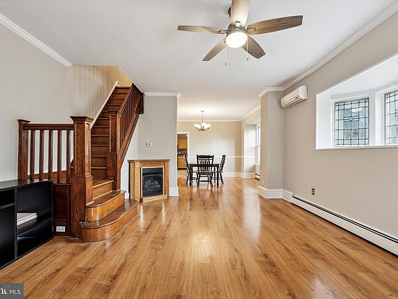 Nestled on a tree-lined street in the picturesque neighborhood of East Falls, is this meticulously maintained end-of-row home. The freshly painted interior and exterior give a great first impression and a clean, crisp backdrop for all of your personal style to shine. This home is the perfect blend of charming historic detail, and updated modern conveniences. Enter through the enclosed front porch, a welcoming space that can be customized to your liking. Stepping into the home, you'll immediately notice the impressive details: hardwood floors that flow throughout the living room & dining room, crown molding, beautiful deep window sills, corner fireplace, and a rich wood staircase. The main floor is equipped with a ductless split system for optimal indoor comfort & temperature control. The kitchen is perfectly appointed with wood cabinetry, stainless steel appliances including dishwasher & gas range, and a buffet area that's perfect for entertaining, a coffee or wine bar, or just extra storage! The back door leads to the deck, and an unexpected surprise - a fully fenced backyard & side yard, surrounded by mature trees for shade & privacy. This beautiful outdoor space allows you to relax & bbq on the deck, use the yard, and still have plenty of space for a vegetable garden. You could truly make this your outdoor oasis. There is even a fire pit for those upcoming crisp autumn nights. Imagine family & friends gathering here for many years to come! Back inside, on the second floor, you will find 3 spacious bedrooms with hardwood floors (each with their own special features), and a full bathroom. The large main bedroom features a hallway for privacy, mirrored closet doors, and views of the serene backyard & trees. The middle bedroom is nicely sized with two closets, and the front bedroom has a beautiful bay window for tons of natural light. The color of the hardwood floors contrasts nicely with the fresh, neutral paint colors. The full bathroom is spacious, with plenty of room to upgrade to a double vanity if desired. It also includes a tiled tub/shower and a storage closet. The unfinished basement houses the laundry, and provides tons of space for extra storage, to keep your living areas clutter-free! This home is a must-see to appreciate all of the architectural details and meticulous maintenance. Clean and freshly painted, it will be easy to envision this as your new home! Upgrade your lifestyle with this unbeatable location - a quiet, neighborhood feel and yet so close to the excitement of the City. Only 3 walkable blocks to the train station, and easy access to Kelly Drive. Walk to coffee shops, restaurants, and parks! Schedule a private tour today, and make this your new home just in time for Fall bonfires & holiday entertaining!