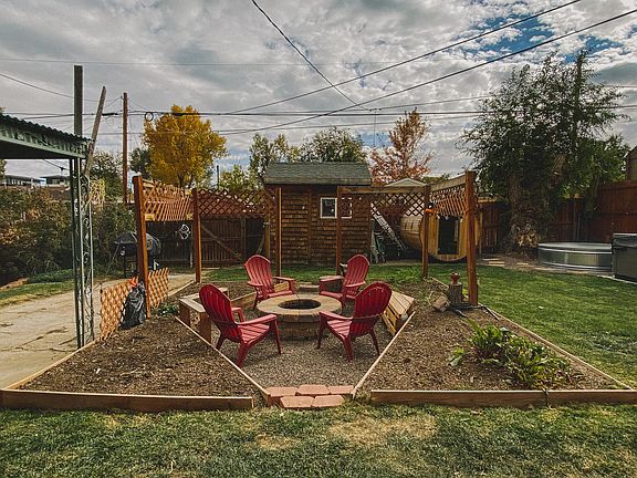 The sprawling yard has a covered patio and propane fire-pit in the center of a large sectioned garden (w/ automated irrigation). The highlight is a brand new 6-seater hot-tub and electric barrel sauna privately tucked into the back corner of the yard.