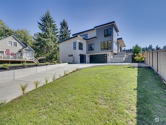 Rare opportunity to buy a 2yr old custom built NW Contemporary Smart Home w/stunning Sound views on professionally landscaped lot with spacious view patio & stamped concrete patio w/pergola in back! Dining room has custom lighting, & buffet w/beverage & wine fridges. Entertainment sized living room w/gas fireplace. Gourmet kitchen w/custom cabinetry, Bosch appliances, & quartzite counters including waterfall island. Den/Bedroom w/custom barn door, & built-in cabinetry. The Primary Suite has plush carpet, custom lighting, walk-in closet and 5-piece bath including; heated tile floors, water room with dual showers & large 6' soaking tub. Enjoy water views from all front facing windows. No expense was spared on this one of a kind custom home!!