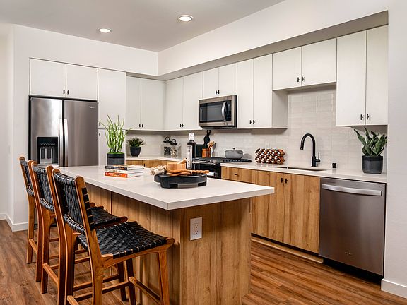- Exterior features: 14-Acre Open Air Nature Area, Attached Garages* Select Units, Backyard Social with Ping Pong Table, Balcony, Barbecue, Big Bark & Tiny Tails Dog Parks, Big Bark and Tiny Tails Park, Business Center, Community-Wide Wi-Fi, Corn Hole, Designer Quartz Countertops, Detached Garages* Select Units, EV Charging stations, Easy Access to Transit and Major Freeways, Elegant Cabanas, Daybeds, and Shade Umbrellas, Firepit Lounges, Flooring: Wood, Glass-Enclosed Custom Showers* Select Units, Large Undermount Stainless Steel Kitchen Sink, Package Receiving, Pet-Pampering Station with Dog Wash Area, Smart Thermostats, Spacious 1- and 2-Bedroom Floorplans, Spacious Closets, Stylish Kitchen Backsplashes, Sundeck, TV Lounge, Upgraded Stainless Steel Appliances