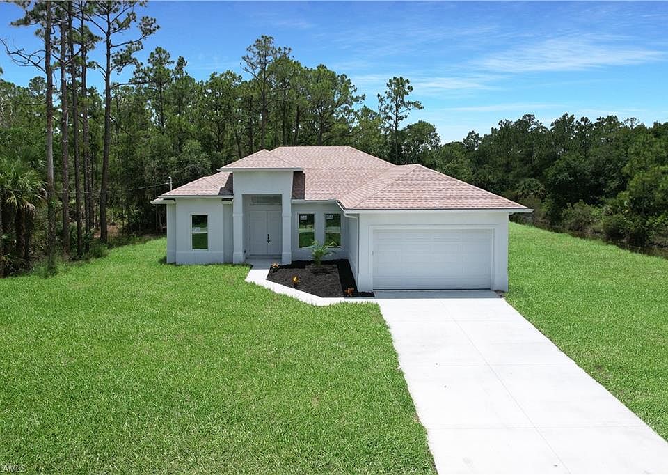 PRICE REDUCTION!!! SELLER WILL CONSIDER ALL OFFERS! Enjoy life in paradise with this BRAND-NEW CONSTRUCTION Single Family Home with Apartment at a GREAT PRICE! This home features a versatile accessory room with its own private entrance and wet bar — ready to be transformed into a rental unit or income-generating space. Opportunity knocks! This Agata model by Blue Diamond Home Builders is scheduled to be completed by end of June 2025 and will be full of exquisite upgrades. Featuring 3 large bedrooms, 3 full bathrooms and over 1,800 square feet of light and bright, open living space and upgraded tile flooring throughout. There's plenty of room and privacy on this .25-acre corner lot with canal. No HOA fees or restrictions in a convenient central Lehigh Acres location. This single-story home with a split bedroom floorplan is perfect for entertaining with an open concept kitchen featuring white cabinets, white quartz counters, stainless appliances, a walk-in pantry and large island for extra seating and storage. The kitchen, living and dining area overlook the open-air patio and allow for the best in indoor-outdoor living. Easy access to I-75, downtown Fort Myers, near plentiful shopping, dining and entertainment options and just a short drive to Gulf beaches! Photos include virtual staging and images of a completed model home, provided to illustrate the potential and vision for this property upon completion.