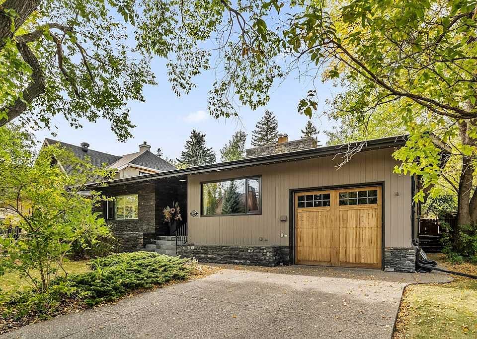 Welcome to this spacious mid-century bungalow offering over 2,100 sq. ft. single level living space with an additional 1928 of space in the lower level, ideally situated on a 62’ x 125’ west-facing backyard in one of Calgary’s most sought-after inner-city communities Elbow Park. This 1950s classic features Rundle rock exterior, a single attached garage, and a detached double garage with convenient alley access. Because of the great square footage, all the rooms are generous in size. Inside the home you’ll find three bedrooms on the main level and two additional bedrooms down, providing plenty of flexibility for family or guests. Both main-level bathrooms have been beautifully renovated, while the large kitchen offers exceptional cupboard space and a convenient side-entry laundry and storage area. The formal living and dining rooms showcase floor-to-ceiling windows overlooking the stunning west backyard, complete with a spacious deck, outdoor fireplace, and hot tub—perfect for entertaining or relaxing. In addition to these rooms there is also a main floor family room with a fireplace and loads of built-ins. The lower level is fully developed with a massive family and recreation area, two additional bedrooms and a 3 piece bathroom providing ample room for future customization. Outdoors, the mature landscaping, perennial gardens, and Gemstone lighting create an inviting private retreat. Just a 20-minute walk to the Glencoe Club and a 10 minutes walk to the Marda Loop, and 5 minutes to River Park, this exceptional home offers a Walk Score of 83 and Bike Score of 84—the perfect blend of character, comfort, and location.