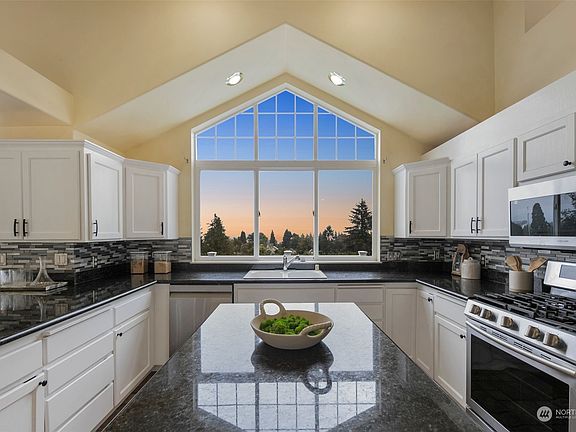 Experience breathtaking panoramic city and mountain views from this custom home in the desirable Rucker Hill community. This stunning property features an expansive 4,000 sq. ft. open floor plan with granite countertops, hardwood floors, and abundant natural light from skylights and large windows throughout. The primary suite occupies its own floor, complete with a cozy fireplace, private deck, and spa-like bath with a jetted tub and walk-in closet. Additional features include a gourmet kitchen with stainless steel appliances, a second primary suite, a large entertainment-sized deck, a covered front porch, and a beautifully landscaped yard for year-round enjoyment. Close to major shopping, schools, Boeing, the marina, and I-5.