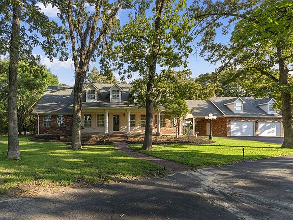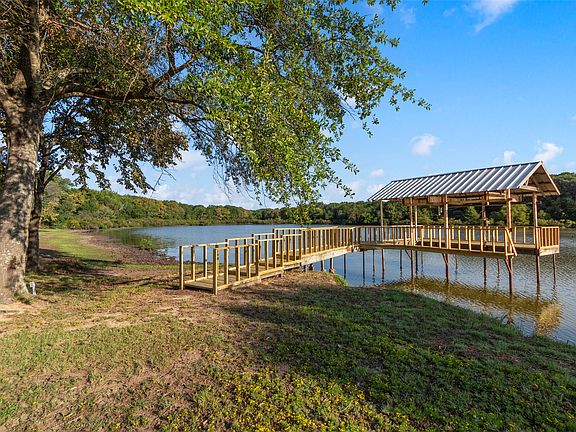 WATERFRONT! STUNNING 4.69 Acre property on a beautiful, secluded cove of Lake Bonham! The MATURE TREES, gated circle drive, & charming curb appeal featuring a front porch with swing say 'Welcome Home'! Explore the large cove, perfect for fishing, swimming, and kayaking - no neighbors across the water from you! Dock with newly replaced decking! Firepit area with hanging chairs are ready for nights under the stars around the campfire! Enjoy your early morning coffee on the large deck off the back of the home overlooking the water. An additional 800 square foot metal building with 3 garage bays offers many possibilities, totaling 5 car garage spaces & 1 covered carport space - so much room for toys & storage. Inside you will find a huge living room with cozy brick fireplace and lots of windows framing the view of the lake. This home is so light & bright! Kitchen with granite counters, GAS range, island, built-in coffee bar, and eat-in area. Great flex space with French doors that could make a great office, formal dining, 2nd living area, or 4th bedroom-bunk room. Gorgeous hand-scraped hardwood floors throughout lots of the home. All bedrooms have brand new carpet! Spacious primary bedroom with ensuite bath with dual closets, and a window showcasing the beautiful property & lake. Spacious secondary bedrooms & full hall bath. Large laundry room with additional built-ins for lots of storage. Half bath for guests. It could be YOU living YOUR lake life dreams on Lake Bonham - don't miss out on this UNIQUE opportunity!