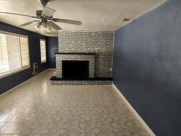 The living room features concrete flooring and a cozy fireplace, creating a perfect space to relax or entertain. The kitchen offers ample cabinetry and connects easily to the dining and living areas. Each bedroom is comfortably sized with natural light and closet space, and the additional half-bath adds extra convenience for families or guests.