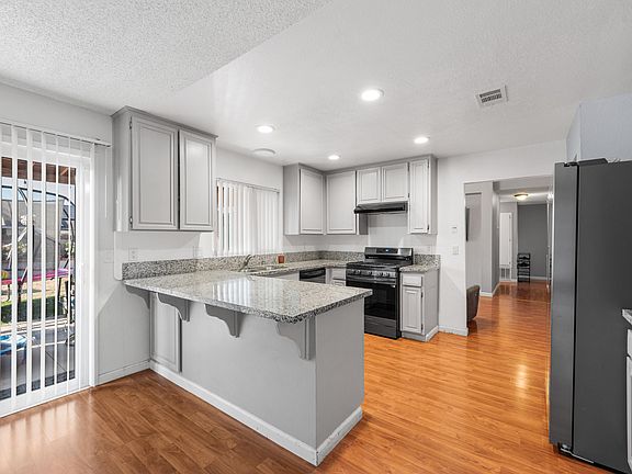 4-bedroom, 2-bath home with comfortable living space of over 1,500 sq ft. Enjoy a rare, paid-off solar system along with a EV charger benefit that can eliminate your electricity bill. The open floor plan is bright due to new energy-efficient windows and sliding doors throughout. Beautiful granite countertops as well as can lighting are featured inside the kitchen. The house has RV access in back with a brick wall around the property. This home, in Palmdale, is centrally located, providing practical living and modern efficiency. Do not miss out on your chance for making this home yours today.