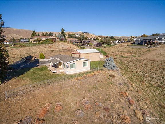 Beautiful Wenatchee Valley, Mission Ridge and Mountain Views. Plenty of privacy and elbow room on large 0.54-acre lot. Huge detached 864 square foot garage/shop with hydraulic lift. Use this opportunity to bring your dream home designs to life or enjoy the manufactured home currently on the property. A little TLC would make this home shine. Property features irrigation and fenced backyard with plenty of room to relax and play outdoors. Excellent Sunnyslope location in a quiet neighborhood.