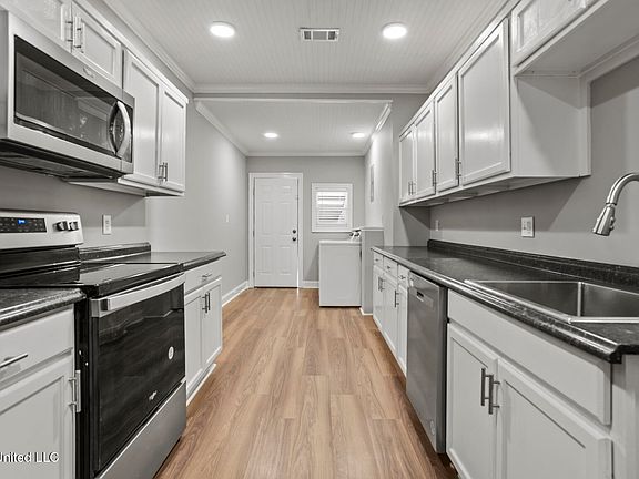 Available 1/1/26. Located in historic Fondren district, close to University Medical Center and MC Law School, Only one year ago, this charming duplex underwent a total renovation. with all new plumbing, electrical, and HVAC PLUS new cabinetry, fixtures and hardware. Beautiful hardwood floors were refinished to gleaming perfection, immaculate new tile laid in the bathrooms, and fresh paint applied to every surface! Unit A has two bedrooms on the first floor (one has a private entrance and its own half-bath) and they share a full hall bath. Upstairs there is another bedroom, a huge living area, a study space, and a large full bathroom. The kitchen has all new stainless appliances, including a refrigerator with icemaker in the door, dishwasher and electric range. A washer and dryer are also included in the rent. The landlord provides water, sewer, and trash collection, plus yard maintenance. The tenant is responsible for all other utilities. This unit comes with one covered parking space and a backyard parking pad for other vehicles. The back door opens onto a new deck. No pets; no smoking. $1800 security deposit. Pre-application is required (short and free) before viewing property. This would be a great roommate plan for those looking to share a space with plenty of privacy.