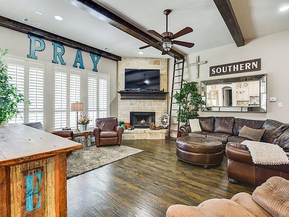 Stunning John Houston Custom Home on acre lot 4 bedroom 3.5 bath. Circular drive, Southwestern landscaping, and lovely front porch create a welcoming atmosphere from the moment you drive up. Inside you will find tray ceilings, hand scrapped wood floors, Plantation shutters, beautiful upgraded cabinetry, stone fireplace, and large center island. In the master suite there is plenty of room for a seating area and a large master bath with separate vanities, garden tub, and large walk in closet. One of the bedrooms features an on suite bath that would be a great space for guest. Upstairs there is a 2nd living space for a game room or media room with a half bath. Oversized 2 car garage. 3 min from 287.