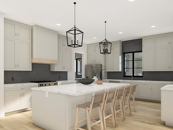 Step into this stunning 5-bed, 5-bath masterpiece by Elite Custom Homes and Maven Tile and Home Design. Natural light floods the interior, highlighting neutral tones and warm woods throughout this thoughtfully designed home. The main level dazzles with soaring ceilings and wood beams in the great room, flowing into a chef's kitchen with limestone floors —perfect for gathering. The primary bedroom is a true retreat with a spa-like bathroom, huge closet with its own laundry area, and even a private porch! Two additional bedrooms with Jack and Jill bath complete this level. Downstairs features three more bedrooms, two full baths, a bar/kitchenette, recreation space, home office, and abundant storage. Plus, there's a three-car garage with extra room that would make a great small studio space or workshop. Experience the perfect blend of French countryside warmth and modern functionality in this Elite Custom masterpiece.