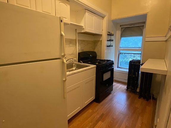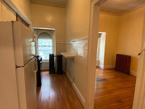 The kitchen was renovated in August with new cabinets and countertop! There are original hardwood floors throughout, a gas stove, closets in both rooms, and we pay for heat!