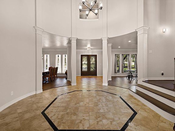 Experience the perfect blend of elegance and comfort in this stunning 5-bedroom home on 1.4 acres of beautifully landscaped land with no rear neighbors and breathtaking views. Upon entering the home and stepping into the rotunda, it’s designed for both entertaining and everyday living. This home features 3 spacious living areas, a media room, a dedicated office, high ceilings in several areas, 3.5 baths, 2 grand staircases, and smart televisions. Additionally, there are ceiling fans throughout (including patio and pool area), recessed lighting, and both HVAC’s have been recently replaced! Enjoy engineered hardwood and tile flooring throughout—no carpet anywhere! The primary suite offers a relaxing retreat with a designated seating area and fireplace, dual vanities, a large walk-in shower, and a garden jacuzzi tub. There are several walk-in closets for storage. The insulated and climate-controlled 3-car garage provides year-round comfort and functionality. Step outside to your private oasis complete with an oversized heated and chilled sport-bottom, faux infinity-edge pool, festive programmable pool lighting for entertaining, auto-filler/drainer for low-maintenance, gas-heated hot tub, and a fully-equipped outdoor kitchen complete with a refrigerator and its own bathroom/changing room. The outdoor area features multiple seating areas, travertine decking, an outdoor shower, and stunning views. Three cozy fireplaces—in the living room, primary bedroom, and on the back porch—create inviting spaces indoors and out. With high-quality interior paint throughout and thoughtful upgrades in every detail, this home combines sophistication and warmth in a truly exceptional setting.