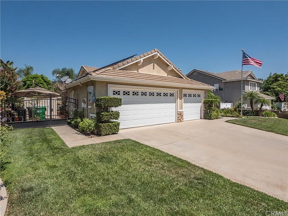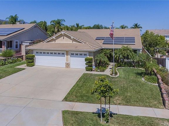 ATTENTION ALL BUYERS!!! THIS IS A MUST SEE HOME!!! This beautiful 3 bed, 2 bath, single story home is conveniently located in desirable neighborhood in the city of Corona with great curb appeal and close to Jameson park. As you walk in to this charming home you'll find the spacious living room that leads to the dinning area which captures a lot of natural lighting. The new kitchen is beautifully upgraded with granite counter tops, stainless steel appliances, large kitchen island and plenty of cabinet space. The family room is very open with cozy fireplace perfect to relax. Tile flooring throughout the home, great size bedrooms and beautiful white blind shutters in some rooms of the home. The master bedroom has a sliding door that gives you access to the gorgeous back yard and you also get a lot of natural lighting. The master bathroom features a double vanity,walk in standing shower and walk in closet. The backyard of this home is just beautiful!!! Full patio across the back of entire house with tile flooring, Perfect for relaxing and family gatherings. Direct access to a 3 car garage, RV Access and much more!!!! Home has Solar and its Paid for! Do not miss the opportunity to see this gorgeous home!!!