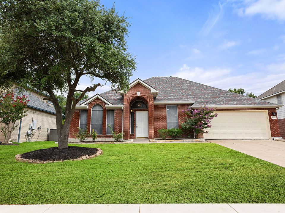 Text to request a showing! Welcome to your new home located at 3612 Hawk Ridge Street, nestled in the Eagle Ridge community of Round Rock. As you step inside, you'll be greeted by the home's brand new flooring throughout, with formal sitting area, perfect for entertaining guests or a quiet moment of relaxation after a long day. French doors lead to the office or front bedroom, an ideal area to work from home, or if you desire a special place for your creative projects and hobbies. This area is versatile and offers endless possibilities to customize your needs. The large, bright open kitchen features stainless steel appliances and a convenient breakfast bar with fresh cabinets, new dishwasher and disposal and designer shiplap touches. The inviting living areas focal point is its fireplace that creates a cozy ambiance. Retreat to the primary suite, where you'll find new designer flooring, a luxurious jetted tub, separate standing shower with frameless glass, and a large walk-in closet complete with shelving for your storage needs. Backing to a greenbelt, the home's backyard and patio offer a serene, private setting for enjoying your morning cup of coffee or your next BBQ gathering. Don't miss this opportunity to make this stunning property your new home sweet home. Text for a showing time.