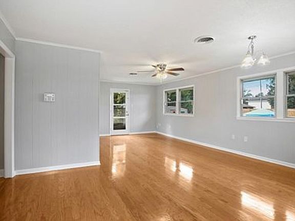 Complete renovation in 2021 and New Roof, Gas appliances oven and Stovetop, Hardwood floors throughout, Quartz countertops in Kitchen and Bath, Central AC and Heat. Off street parking and large fenced in yard.