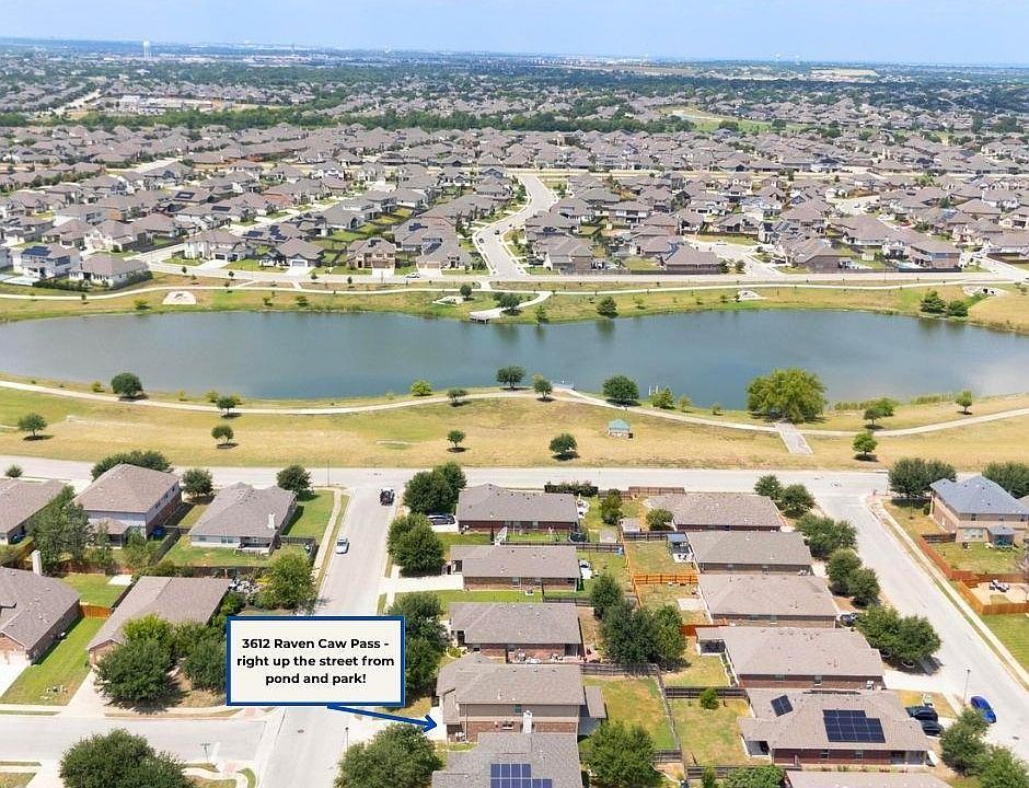 **1% of loan credit available from Sellers Preferred Lender for closing costs contribution**Also - this property qualifies for SouthStar Bank's H.O.P.E Home Loan which offers 100% financing with no mortgage insurance!** Exceptional location meets everyday convenience in this beautifully presented home in The Park at Blackhawk. With an easy commute to major area employers like Tesla, Samsung and Dell, you’ll love the accessibility — and the Pflugerville lifestyle offers the best of both worlds: small-town charm with big-city amenities just minutes away. This spacious and thoughtfully designed home has a place for everyone. The open-concept living and dining area flows seamlessly into the kitchen, where you’ll find abundant storage, expansive prep space, and stainless steel appliances — perfect for entertaining or quiet nights at home. A dedicated study with French doors provides privacy for working or learning from home. The downstairs primary suite is a true retreat with a double vanity, soaking tub, separate shower and custom walk-in closet. Upstairs, three additional bedrooms surround a generous loft — ideal as a game room, second living space or hobby area. Step outside and enjoy being just steps away from the neighborhood pond and park, with community amenities that include a sparkling pool, playground and scenic walking/jogging trails. Move-in ready, competitively priced, and offering an unbeatable location — 3612 Raven Caw Pass is ready to welcome you home.