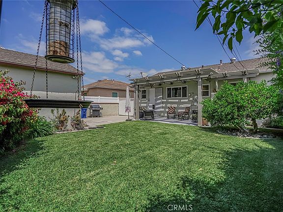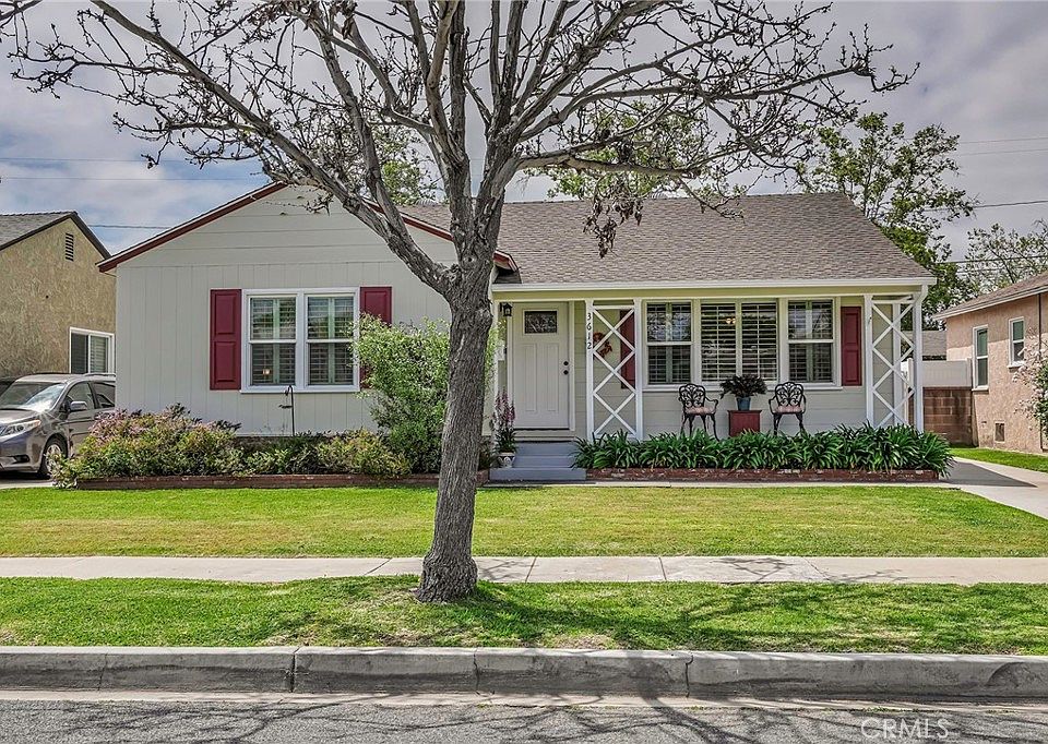 Welcome to the quaint and quiet community of Lakewood Mutuals. Conveniently located near schools, shopping and entertainment, this delightful cottage-style home is in immaculate condition and offers 3 bedrooms, 1 bathroom, 1210 square feet, and is loaded with modern amenities. Throughout this tastefully-appointed home you’ll appreciate the harmonious wall colors, gorgeous hardwood floors, and stately plantation shutters. The bright kitchen is efficiently configured and offers a generous pantry, stainless steel appliances, electric cooktop, refreshed cabinets with soft-closing doors and drawers, sleek granite countertops, tumbled-edge tile backsplash, and large-format floor tiles which extend into the adjacent laundry room. All three bedrooms have been lavished with new curtains, while the bathroom has been beautifully remodeled with new flooring, new tile, a new tub, and new glass shower. Out front, imagine yourself taking in the gentle pace of the neighborhood from the charming front porch. Or, if you’re in a more solitary mood, take sanctuary in the lush and entirely private backyard. There, you’ll also find a handsome attached pergola, ideal for summertime gatherings. The large 2-car detached garage has a newer roll-up garage door with easy-close remotes. The entire home and garage have been recently painted, and both have been reroofed with 40-year composite shingle roofing. Additional highlights include a newer Therma-True Benchmark fiberglass front door, upgraded double-glazed windows throughout the home, a dining room fan/light combo, blow-in insulation in the attic, a new driveway gate, a newer lawn sprinkler system, newer electrical panel circuits and wiring, and a newer water heater.