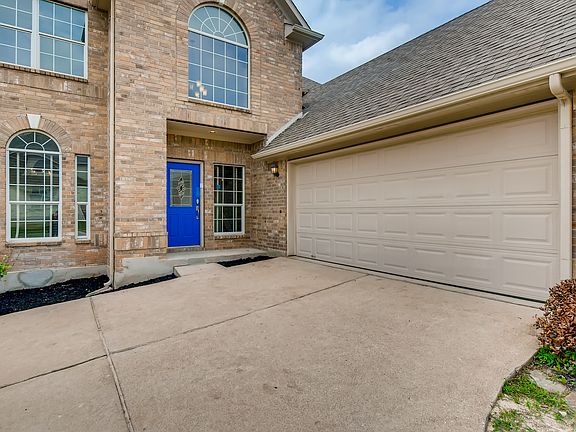 This stunning 4 bedroom, 2.5 bathroom home is set amongst manicured grounds in the quiet and desirable Eagle Ridge neighborhood. Upon entering, one will immediately notice a 2 story foyer, a luxurious formal dining room, and hardwood floors that sweep across shared spaces and dress the stairs that lead up to more private areas. The living room enjoys soaring ceilings, an abundance of natural light and is centered by a wood-burning fireplace and built-in shelving. Imagine preparing meals in the adjoining open kitchen, equipped with stainless steel appliances, alabaster quartz countertops, and modern tile backsplash. The breakfast area overlooks and provides access to a private covered deck within a sprawling fenced backyard, perfect for entertaining. The main floor also features a dreamy primary bedroom designed with tray ceilings and bay windows. The spa-like en-suite bathroom, complete with double vanity sinks, garden tub, glass walk-in shower, and an expansive walk-in closet, makes the whole room an owner's retreat. Upstairs showcases a lofty bonus room and guest bedrooms, all with sizable walk-in closets. Additional highlights include a laundry room and a 2 car garage with ample storage space. Enjoy easy access to I-35, major employers, and the Round Rock Outlet Mall.