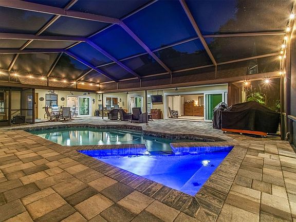 Welcome to one of Valrico’s premier subdivisions—SugarLoaf Ridge! Pride of ownership shows throughout this custom built 4 bedroom, 3 ½ bath, 3 car garage brick home in a double cul-de-sac neighborhood of only 18 executive homes with a low HOA ($500/year) and NO CDD. The home sits on a 1/2-acre lot with impeccably manicured landscaping, fully fenced yard, and a lanai with large pool and spill-over spa visible from almost everywhere in the home. The pool components including propane heater, pool finish, tile, pavers, and pool cage were completely redone in 2022. The interior boasts a roomy living area with a magnificent fireplace (propane or wood burning) as the focal point. The home has a 38 x 21 entertainment/game room with a full bar, a pool table, and extra storage closets. The half bath adjacent to the bar sink area makes easy access for pool guests. The flooring in the main living areas, secondary bedrooms and game room was replaced with luxury vinyl in 2022 The designer kitchen has loads of counter space, custom cabinetry, custom lighting, a deep pantry, cooktop island, self-closing drawers and stainless steel appliances that were replaced in 2022. There is a formal dining room as well as a breakfast nook located off the kitchen. The luxurious, oversized primary suite, complete with beautiful ceramic tile, overlooks the lanai and has new pocket sliding doors that can be opened on a nice day. In addition, the owners have constructed an office right outside of the bedroom. There are two additional bedrooms on the first level plus an additional fully remodeled bathroom. Also on the first level is the interior laundry room with sink and folding area. Upstairs you will find a large loft with extra closet space that could be used for a study or play space, full-size bathroom, and 4th bedroom! New carpet is on the stairwell and in the loft area. The sprinkler system is on a deep well so you can water all you want and maintain a pristine lawn. There are no water/sewer bills due to septic systems (pumped and cleaned in 2023) and well (all well components were replaced in 2021). Solar panels were installed in 2018 and the roof was replaced that year as well. Your average electric bill is only $250. Two of the three A/C units were replaced in 2022 and one A/C unit was replaced in 2020. The home includes a Culligan water filtration and reverse osmosis system. All the windows in the main house have been replaced with double pane energy efficient upgrades. There is a three-car garage with painted acrylic flooring. Really there are too many unique features to mention! This home is charming and you will feel right at home. Homes rarely come available on Sugar Loaf Lane. Put this on your MUST SEE LIST!!