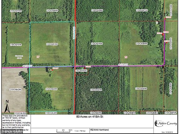 Local hunting land. Room to build. Approx 1/2 mile of frontage, great business exposure, along Hwy 169 in Aitkin, MN. 80-acres in total with 65-acres (tillable) and 10-acres (wooded) PLUS a 5-acre orchard with over 200 trees currently planted and room for about 20 more. Fruit producing! Planted with vintage hard cider apples - 1 year contract from Aug 2018 (expired). On-site improvements: large newly built 30x30 pole barn with 5in rebar reinforced concrete floor, 8-foot deer fence, electrical & 2 wells.