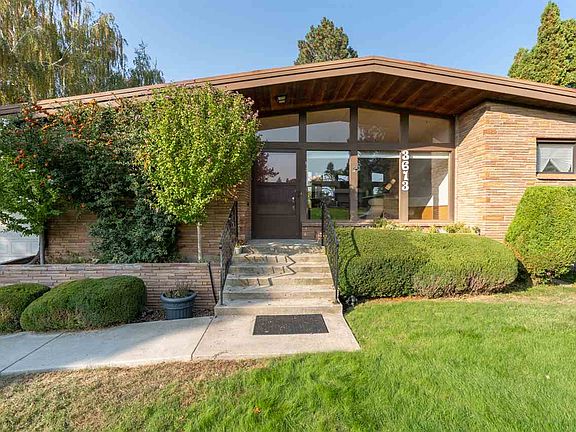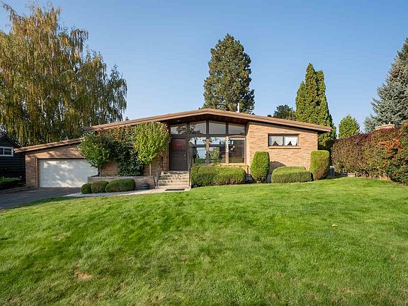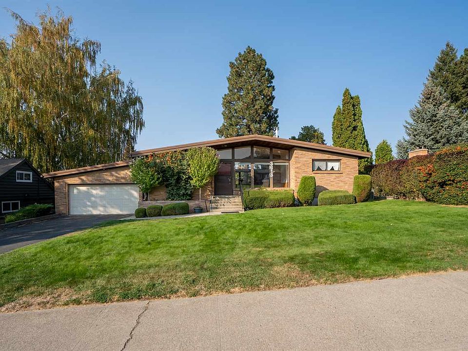 Beautiful Mid-Century Modern brick rancher with gorgeous kitchen remodel that includes Columbia frameless cabinets and white quartz countertops and a "live-edge" coffee bar. "Open-concept" living room to dining room with vaulted ceilings has a remote control gas fireplace. Dramatic windows let in lots of natural light and provide views of the lovely landscaped yard. Balcony off the dining room is a great place for a cup of coffee or to watch the sunset. Three generously-sized bedrooms on the main floor, including a cool MCM checkerboard wood paneled bedroom / office just off the main entry. Daylight walkout basement with large Rec room / TV room and another remote control gas fireplace, and a spacious bedroom with a nearby newly remodeled bathroom that could be made a "suite", and a non-egress bedroom perfect for crafting, art projects or an office. Laundry room with utility sink leads to "mudroom" with a doggie door to the large back yard. Current D/W excluded; seller to provide new D/W