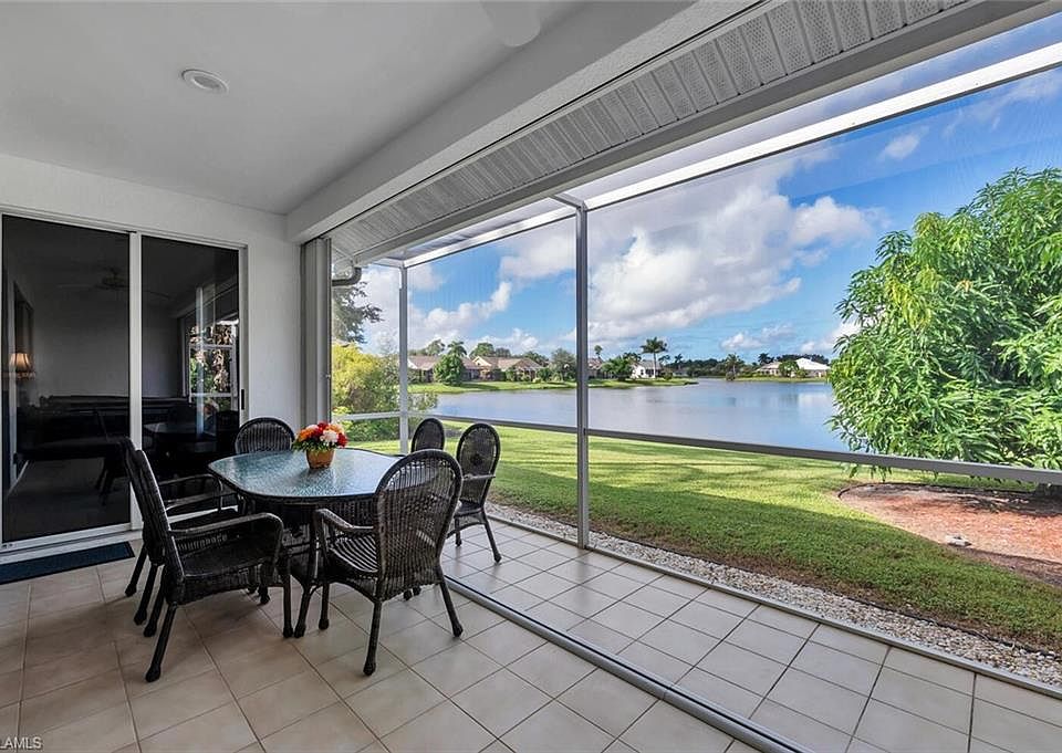 SPECTACULAR LAKE VIEW & ROOF IS BARELY TWO YEARS OLD!! This 3BR/2BA residence located in the desirable neighborhood of Queens Park, features a split floor plan, offering privacy and flexibility for families or guests. Both the primary and guest bathrooms have been beautifully updated and the spacious kitchen provides an impressive amount of space and endless potential for the next owner's vision. Step into the screened lanai and enjoy peaceful mornings and gorgeous sunsets overlooking a beautiful LAKE view. Outside, you will also find a fully functioning above-ground jacuzzi, perfect for relaxing evenings or entertaining friends year-round. This is Florida living at its best!! Located in a pet-friendly, non-gated community with LOW HOA fees, you're just minutes from Publix, downtown Naples, world-renowned beaches, shopping, dining and everything Southwest Florida has to offer.
