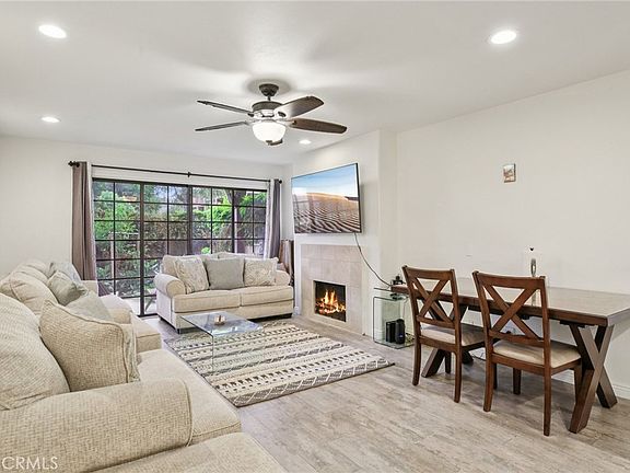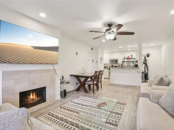 Lovely 1-bedroom, 1-bath condo in the desirable gated community of St. Albans. Step inside to a bright, open living area with recessed lighting, a cozy fireplace, and glass doors that open to your private patio. The dining area flows seamlessly into the kitchen, which features stainless steel appliances, crisp white cabinetry, and recessed lighting—perfect for everyday living or entertaining.