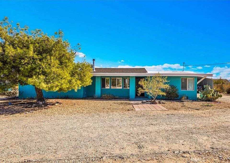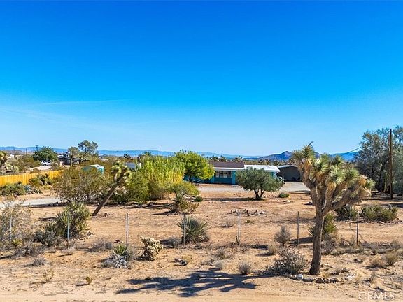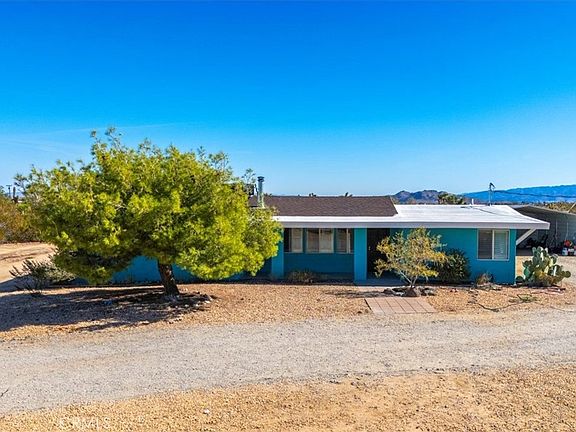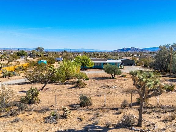 Perched on an acre overlooking the dramatic landscapes of Pipes Canyon and the volcanic mesas of Sand to Snow National Monument, this exceptional 4 bedroom, 4 bath POOL HOME situated high on Yucca Mesa blends privacy, comfort, and desert beauty. Fully fenced with a solar-powered remote gate and lush mature landscaping, the home offers both seclusion and convenience in one of the area’s most scenic settings. Perfect for multi-generational living, the property features a 3 bedroom, 3 bath main house with a 1 bedroom, 1 bath attached pool house/mother-in-law suite. The main house features a welcoming covered front porch perfectly positioned to take in sweeping canyon and mesa views. Inside, a spacious living room with high ceilings, a retro stone hearth with wood stove, and a bank of large windows brings the desert panorama indoors. The kitchen provides ample cabinet space, quartz countertops, and a tile backsplash, connecting seamlessly to a generous dining area ideal for gatherings. Two oversized primary bedrooms each offer a recently remodeled private ensuite bath with glass-doored, tiled walk-in showers. The third bedroom is comfortably sized, and the guest bath features its own glass-enclosed shower with a soaking tub. The attached pool house or mother-in-law suite adds flexibility, complete with its own bedroom, bathroom with tiled walk-in shower, comfortable living area, and kitchenette with tile counters and backsplash. Mini-splits ensure efficient zoned climate control. A dedicated laundry room sits conveniently between the main home and guest quarters, accessible from the back porch. Outdoor living shines here with an extensive back patio area, featuring an Endless Pool for exercise or relaxation. The property also includes a carport, greenhouse, and storage shed, and FULLY PAID SOLAR, completing this one-of-a-kind desert retreat. With its combination of spacious design, modern updates, and panoramic natural surroundings, this property is a rare find for those seeking the best of high desert living. Book a showing to see this beauty for yourself.