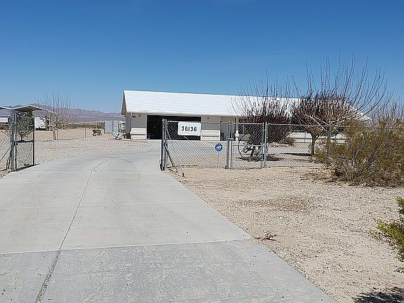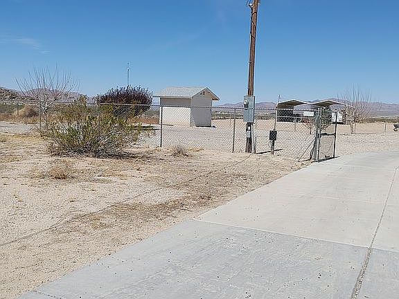 Well kept 3 bedroom, 2 bath home with ***425 ft deep WATER WELL** on fully fenced 4.26 ACRES. Come start your own farm or enjoy rural weekend living. This is a 2004 year built custom home that was made to last. It has a 125 mph wind resistant metal roof, 2 x 6 construction, fire sprinklers for added protection. The inside has all tile flooring, oak cabinets in the kitchen and bathrooms, Central AC/Heat with evaporative cooling as well. 48 x 51 RV cover. Schools and local shopping centers are nearby with Big Bear approximately 30 minutes south and Johnson Valley approximately 20 minutes east. Come bring your RV, RZR, Quads, Dirt Bikes and animals. Association Amenities: None # of RV Spaces: 0 Special Features: VA,FS,TS,SHNONE Lot Location Type: Standard Location Landscaping: Natural # of Attached Spaces: 2 # of Detached Spaces: 0