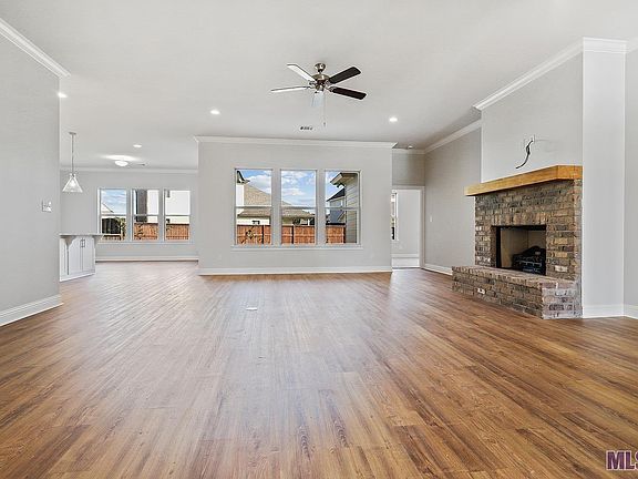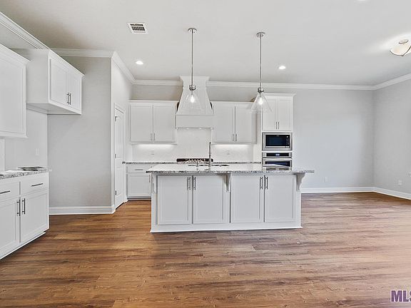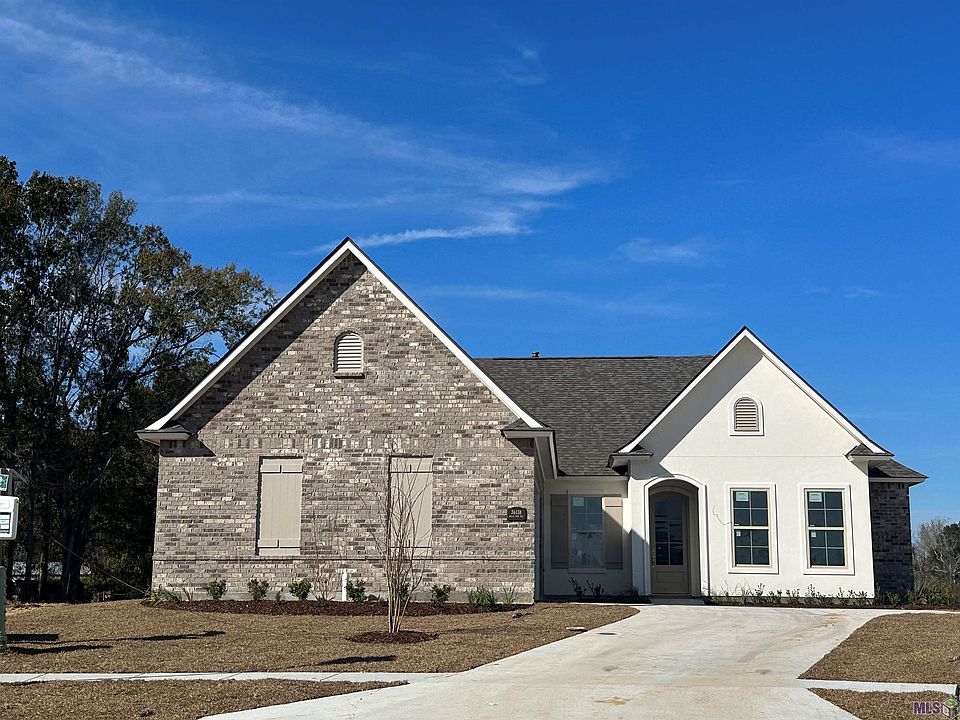 Myrtle floorplan on one of the largest cul de sac lots in the final phase of Belle Savanne! The Mrytle is the perfect 4 bedroom, 3 bath triple split floor plan with a large open great room, kitchen and breakfast room. Stained cypress beams separate the foyer from the great room. The great room features a ventless gas fireplace with brick surround, raised hearth and stained mantle and and has views to the covered patio and backyard. The gourmet kitchen features custom painted cabinetry with 5" hardware pulls, stainless steel appliances including a 36'-5 burner gas cooktop, built in wall oven and microwave, large center island with a dual compartment granite sink and beautiful hanging pendant lighting, 3 cm Carrara White granite, subway tile backsplash laid in a herringbone pattern and a walk in corner pantry. The master bedroom is located off the rear of the home and features a spa like master bath with dual vanities, Valle Nevado granite, custom framed mirrors, soaking tub with granite surround, a separate tiled shower, water closet and walk in closet with custom shelving. Large utility room, coat closet and a mudroom with space for an "optional" mud bench located off of the garage entry. The yard is professionally landscaped and fully sodded. Home will be MOVE IN READY end of January 2024. Other lots and plans available. Belle Savanne is a walkable neighborhood featuring multiple lakes, green space and a stunning community pool with cabana!