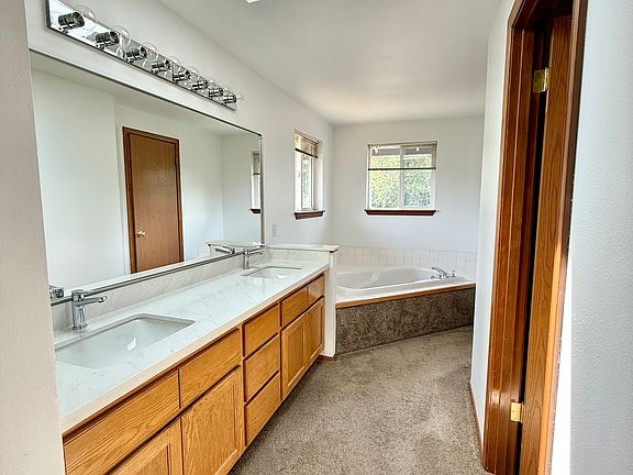 Eating bar in kitchenNew quartz countertopsDouble vanitySoaking tubWalking closetFamily roomCathedral ceiling