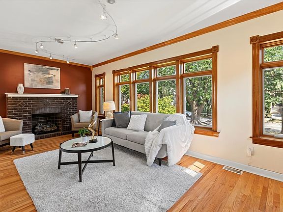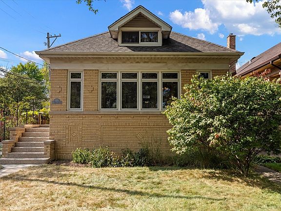 Get ready to check off all the "must have items" on your wish list! This brick bungalow sits on a corner lot, gets an enormous amount of sunlight, has been very well updated and cared for by thoughtful owners, and is in the prestigious The Villa historic neighborhood! The main level has a large living room with a gas fireplace and lovely windows that overlook the tree-lined street. The dining area is open to the living room and while it easily fits a table for 4, a table can extend into the living area for larger gatherings! The kitchen was totally renovated in 2016 and has quality wood cabinets, granite counters, and stainless steel appliances including double refrigerated drawers. Large windows and a glass door to the back yard allow loads of light into the kitchen, and easy outdoor entertaining. There is a custom built 2-tired deck out the kitchen door with a bay for a grill and built-in bench seating. The main level also features two generous bedrooms and a spacious full bathroom with a whirlpool tub! The 2nd floor is a primary suite complete with space for a king size bed, 2 large south facing skylights, a window seat at the front window, and an en-suite bathroom that was totally renovated in 2020, complete with walk-in shower, skylight, and a closet. The partially finished basement is prepped and ready for your plans! The basement was dug down in 2009 and has a perimeter drain tile and sump pump, the walls have been drywalled, there is a full bathroom (new in 2010), and lots of open space to make another bedroom/family room/recreation space. There is a dark room equipped with a stainless steel utility sink and exhaust fan, and a laundry room with a door to access to the back yard. The back yard is fully fenced in, has a 2 car brick garage, a lovely edible garden along the south side of the home (grape vines, raspberries, a producing peach tree, rhubarb, and more!) and lots of beautiful perennial landscaping thru the property. Enjoy sunny days and cool nights in the backyard while you watch movies on the movie screen that operates on a switch on the garage wall! This home underwent a large renovation in 2007 that included new windows and roof. The home has been updated with central heat and air conditioning. The sellers have done many updates, including basement rennovations; gas fireplace; deck; new 100amp electric panel; 2016 new kitchen and appliances; new back and front doors; refinished hardwood floors; 2020 primary bathroom; rebuilt front concrete steps and brick wall and tuckpointed chimney 2022. Included in sale: basement fridge and deep freezer, window ac (which sellers used to supplement central ac in primary bedroom), security system, curtains/blinds, movie screen, wardrobes in bedroom, linen cabinet in bathroom. Close to Blue Line, 90/94, Metra, Irving Park restaurants like Smoque, LaVilla, CTA Tacos, Backlot, Lou Malnati's, Eris Cider and Brewery, Old Irving Brewery, and Independence Park (with farmers markets)! If you have been looking for a home that is well maintained, move in ready, and a perfect Goldilocks size...here it is!