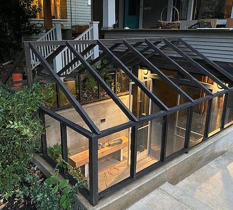 Style: Modern, steel beam, wood columns, recycled double doors (front, vestibule, garden patio); school doors, mortuary doors, glass double doors (patio), all brand new stainless appliances, matte white paint, brand new awning windows throughout, private side entrance, private garden patio with stainless Solo Stove fire pit, vestibule with floor to ceiling glass double doors, large locking storage unit.