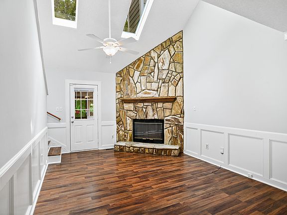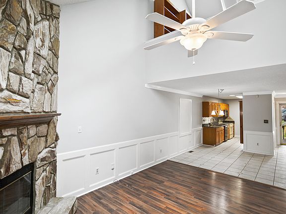 Charming 3 bed 2 bath townhome in convenient Raleigh location. Hardwood style laminate flooring throughout most of home (no carpet). Fresh interior paint. Extensive millwork. Spacious family room features cathedral ceiling & wood burning fireplace with stone surround. Open dining area with tiled floors. Galley style kitchen offers granite countertops. Large primary suite with vaulted ceiling, whirlpool tub & separate shower & walk in closet with built-ins. Loft/bonus room includes built-in bookcase. 2 generous sized bedrooms on main floor. Screen porch + deck with great wooded views. Welcoming front porch.