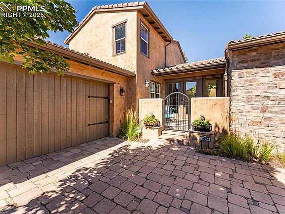 Discover a rare opportunity to own the only available home in the prestigious La Bellezza community at Pine Creek Golf Course. This beautiful low-maintenance and Italian-inspired villa offers over 4,700 sq. ft. of thoughtfully designed living space, blending timeless elegance with easy, refined living. The main-level primary suite provides comfort and style, while the gourmet kitchen features granite countertops, rich cherry wood cabinetry, and upgraded stainless steel appliances. A private courtyard with a cozy fireplace creates the perfect setting for morning coffee or evenings spent with loved ones. Tucked away on a quiet cul-de-sac backing to peaceful open space, this villa offers both privacy and a location within one of Colorado Springs’ most picturesque neighborhoods. La Bellezza is celebrated for its lush courtyards, classic architecture, and tranquil setting that captures the essence of relaxed Colorado living. The home includes two primary suites, one on the main level with French doors that open to the courtyard and another spacious suite on the lower level, offering comfort and flexibility for guests or family. Enjoy being just minutes from The Club at Flying Horse, the shops and dining at Briargate, and the scenic walking trails at Fox Run Regional Park. Convenient access to nearby premier medical facilities, including UCHealth Memorial North, provides peace of mind and everyday convenience. With its warm Mediterranean charm and serene surroundings, this exceptional villa invites you to experience beauty, comfort, and connection in one of the city’s most desirable settings.