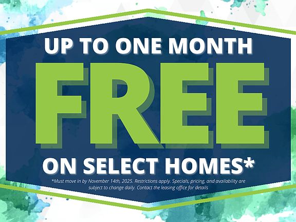 - Special offer! Up to One Month Free on select homes! *Must move in by November 14th, 2025. Restrictions apply. Specials, pricing, and availability are subject to change daily. Contact the leasing office for details