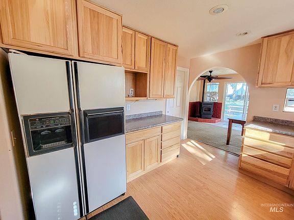 Gather your friends for a game of horseshoes! You'll love this large lot with mature trees that offer privacy and plenty of shade! There is plenty of parking and room for a shop! All main level living with two ample bedrooms and a large bathroom. The living room is oversized with a tray ceiling. A large dining/family room space with a cozy wood stove is just off the oak kitchen. The partial basement is unfinished with an egress window and plumbed for a bathroom. The area is QUIET!